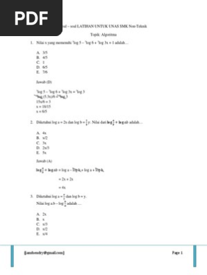 untuk "Soal Logaritma Kelas 12 - X Soal Logaritma Kelas X : Logaritma merupakan kebalikan dari fungsi pangkat sederhana."